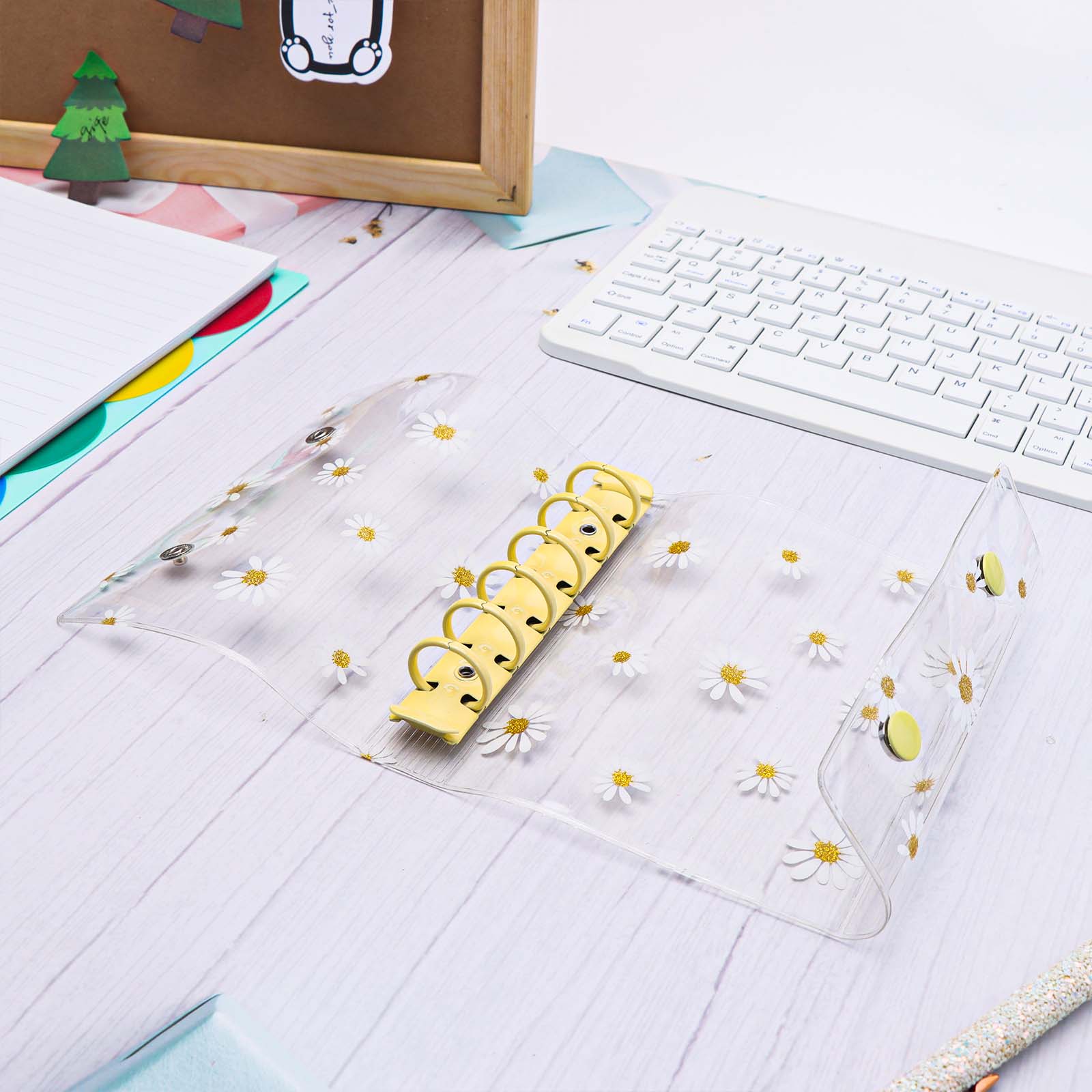 A7 Binder with Double Snap Button Cute Daisy PVC Binder Cover Loose Leaf 6 Ring Refillable Notebook Cover