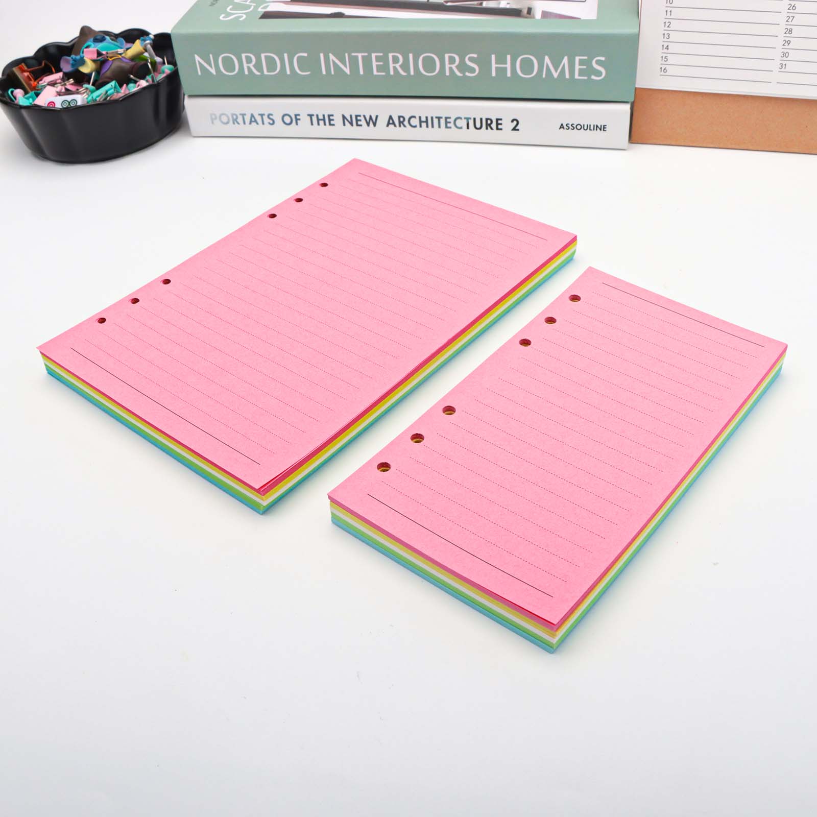 • Color: The loose leaf paper refill with 5 colors (pink, yellow, white, green, blue).