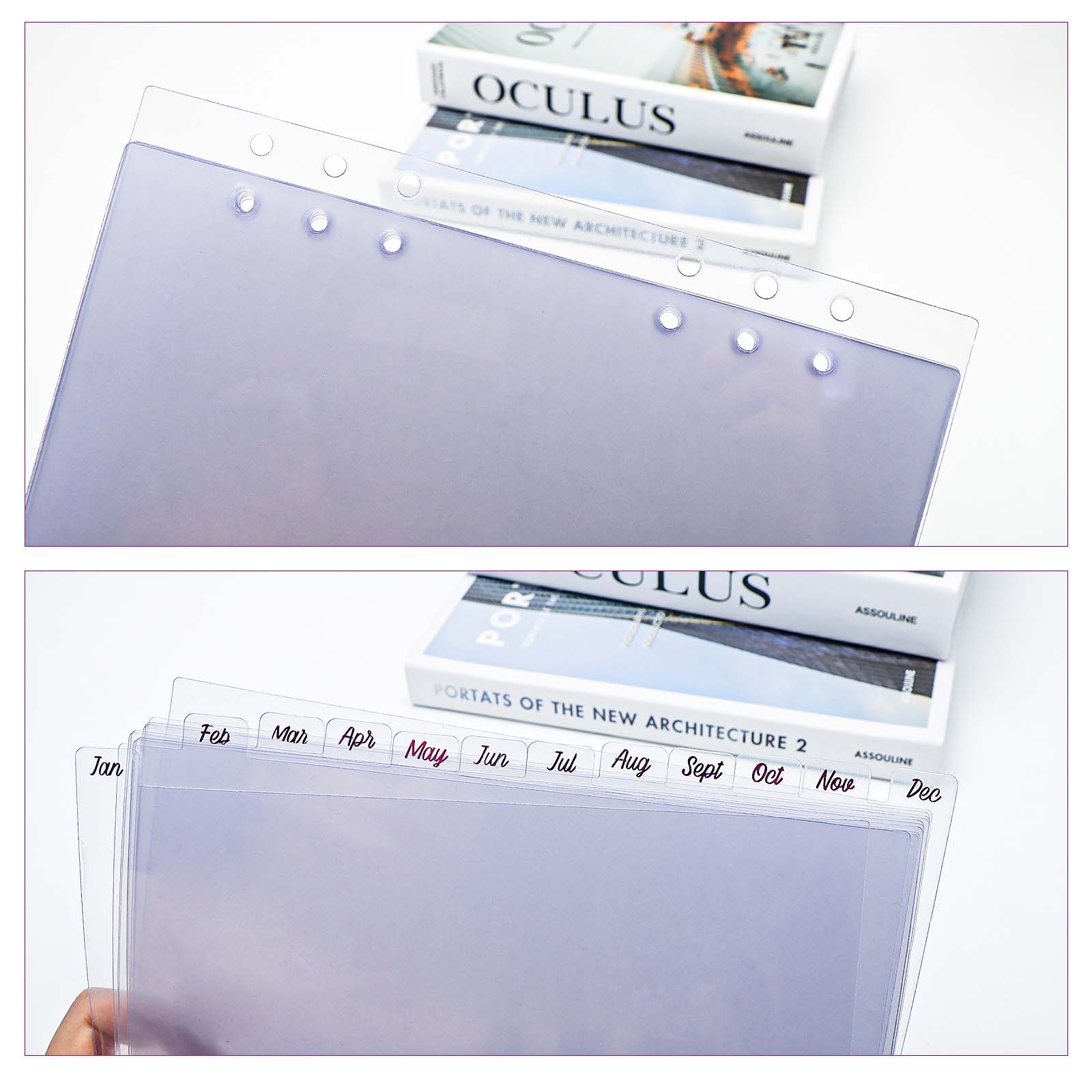 - Прозрачные ПВХ-разделители с красной фольгой на 12 месяцев по месяцам.